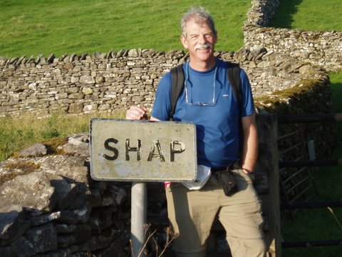 Day 5: Patterdale to Shap We had a good start, with breakfast at 7:30 and a half mile walk into town. Bought sandwiches, bread and fruit for lunch, at the post office, and headed across the stream to begin the climb up to Angletarn Pike. I discovered too late that I had left my walking stick behind at Noran Bank Farm. Up high the wind was blowing cold and stiff, and there was a haziness in the air that persisted most of the day. Despite the haze, the views from the first peaks and the path along to Kidsty Pike, was spectacular. We ate lunch behind and just below the crest of the crag, seeking shelter from the wind, while looking north down an attractive valley. The descent was gentle and enjoyable until the last 400 feet or so when the slope became jarring.
