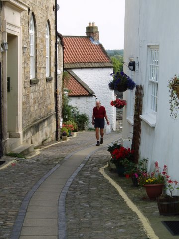 The village of Marrick was listed in the Doomsday Book. Who knows how old it may have been in 1086? How much of the history we know is due to good census and tax records? Over the ridge of a hill and down to Marske, then on around Applegarth Scar through Whitecliffe Wood and down into Richmond. The descent offers enticing views of Richmond, and the castle above, and promises great things for the evening. James, who sat on his glasses several days ago, is still looking stylish with adhesive tape on the rims. Neither of the optician shops in town had the stuff to fix them. Both of us had looked forward to a visit to the Richmond Public Library and a chance to check in by email. Would you believe it? Closed on Wednesday! An accommodating computer seller on the square let us use his connection for a few minutes, but neither of us got completely caught up.